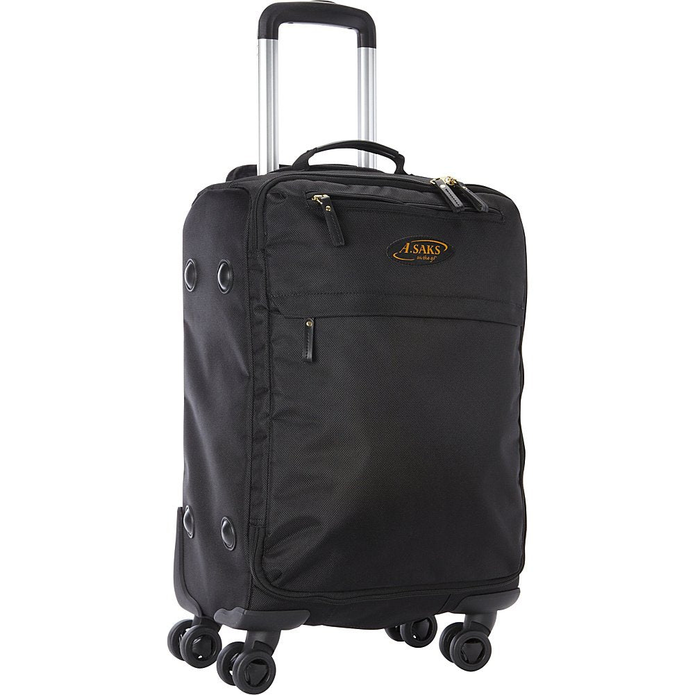 Lightweight, and durable, the A. Saks 22" Lightweight Carry On Spinner provides exceptional capacity. Featuring dual spinner wheels, 2 inside pockets and 2 outside pocket and a telescoping trolley handle, this carryon weighs in at only 5.6 lbs.