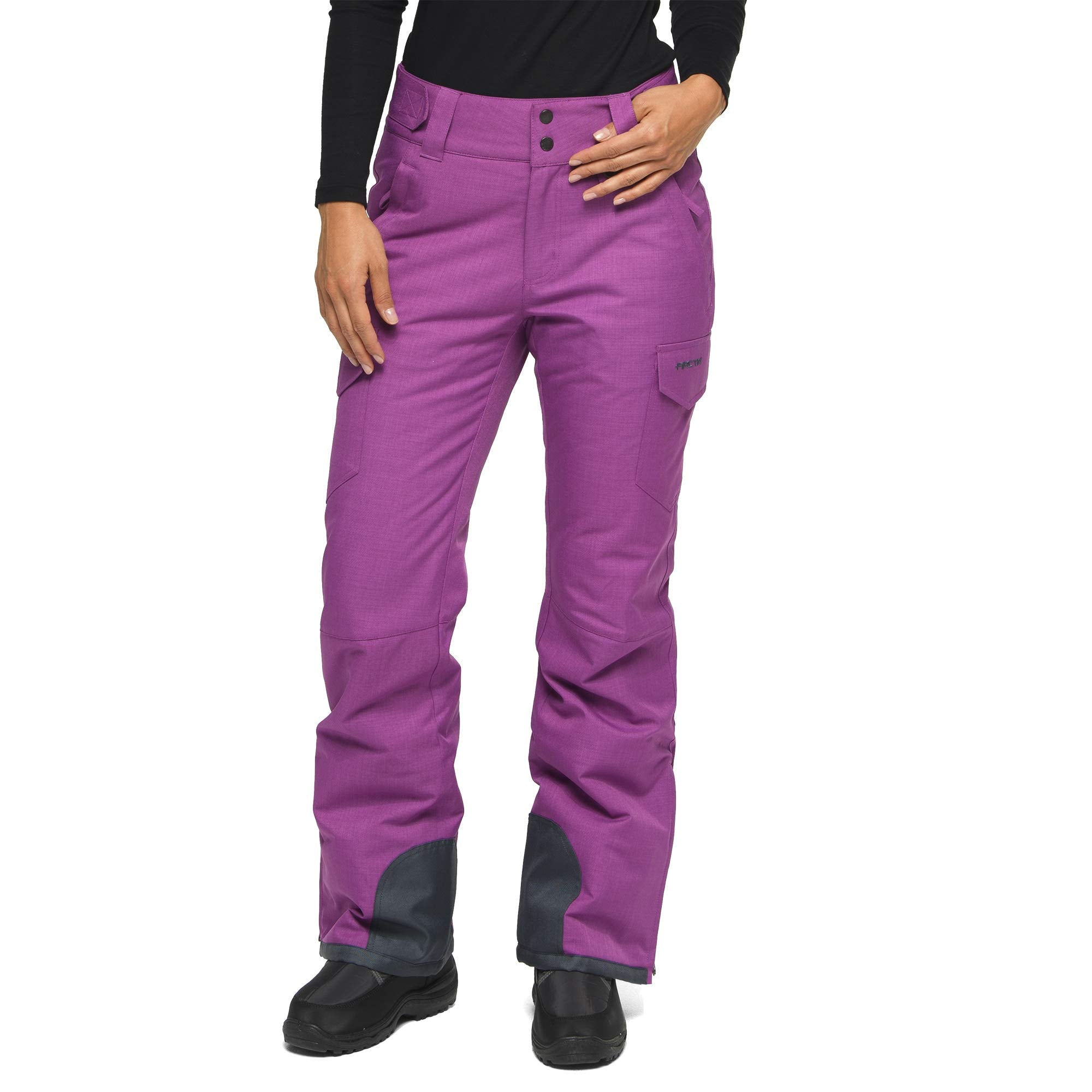 Season after season, the 1830 Arctix Women's Cargo Snow Pants serve as an outstanding value priced ski/snow pants and a versatile cornerstone of the Arctix line. These pants feature a 100% Polyester Dobby shell with ThermaLock W/R + W/P 3000mm Coating, offering a maximum degree of durability and protection from the elements, while allowing a full range of motion. 85 grams ThermaTech Insulation offers warmth in a lightweight, low bulk garment, keeping you warm at temperatures from -20 to +35 depending on your level of activity. DWR finish (Durable Water Repellent) helps repel water from fabric surface. Articulated knees allow for a more unrestricted range of motion and comfort as you climb, hike, or ski/snowboard. The adjustable waist ensures a comfortable fit, while boot zippers make them easy for on and off access over boots. Boot gaiters with grippers form a seamless integration with the boots to keep the warmth in, and the moisture out. These relaxed fit pants also include 600 Denier Ballistic reinforced ankle, scuff and hem guards to hold up against daily wear & tear, and conveniently has cargo pockets for extra storage and an O-ring for keys, gloves and/or lift tickets. The pants provide zippered hand warmer style pockets, a zippered fly, and belt loops. They are water and wind resistant, and are machine washable.