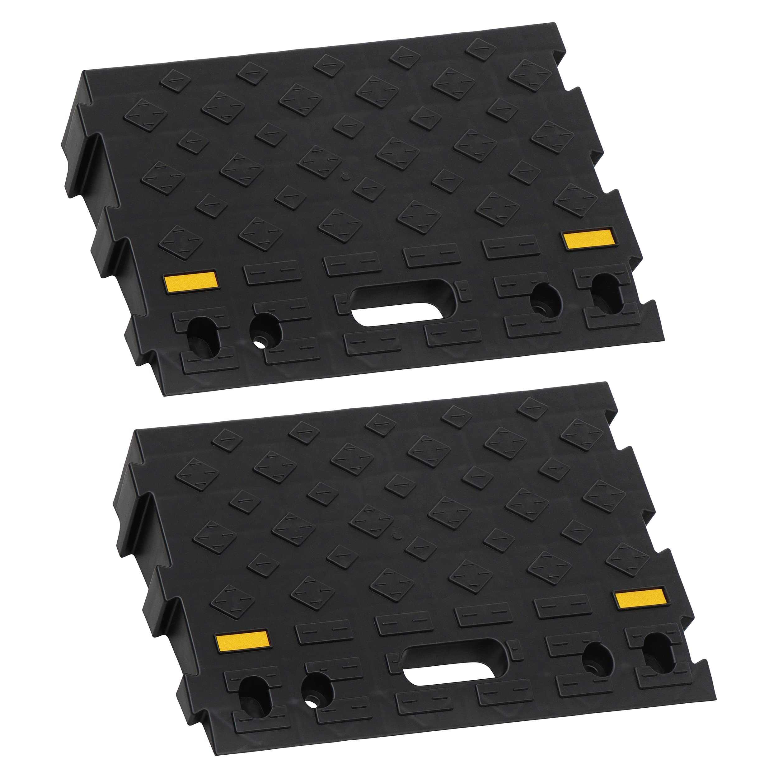 • [Interlocking Design]: 2 pack driveway wedge ramps allow you to extend the width of your inclining surface; Connect the individual 20-inch (50.8cm) wide rubber ramps for a total 40-inch (101.6cm) width