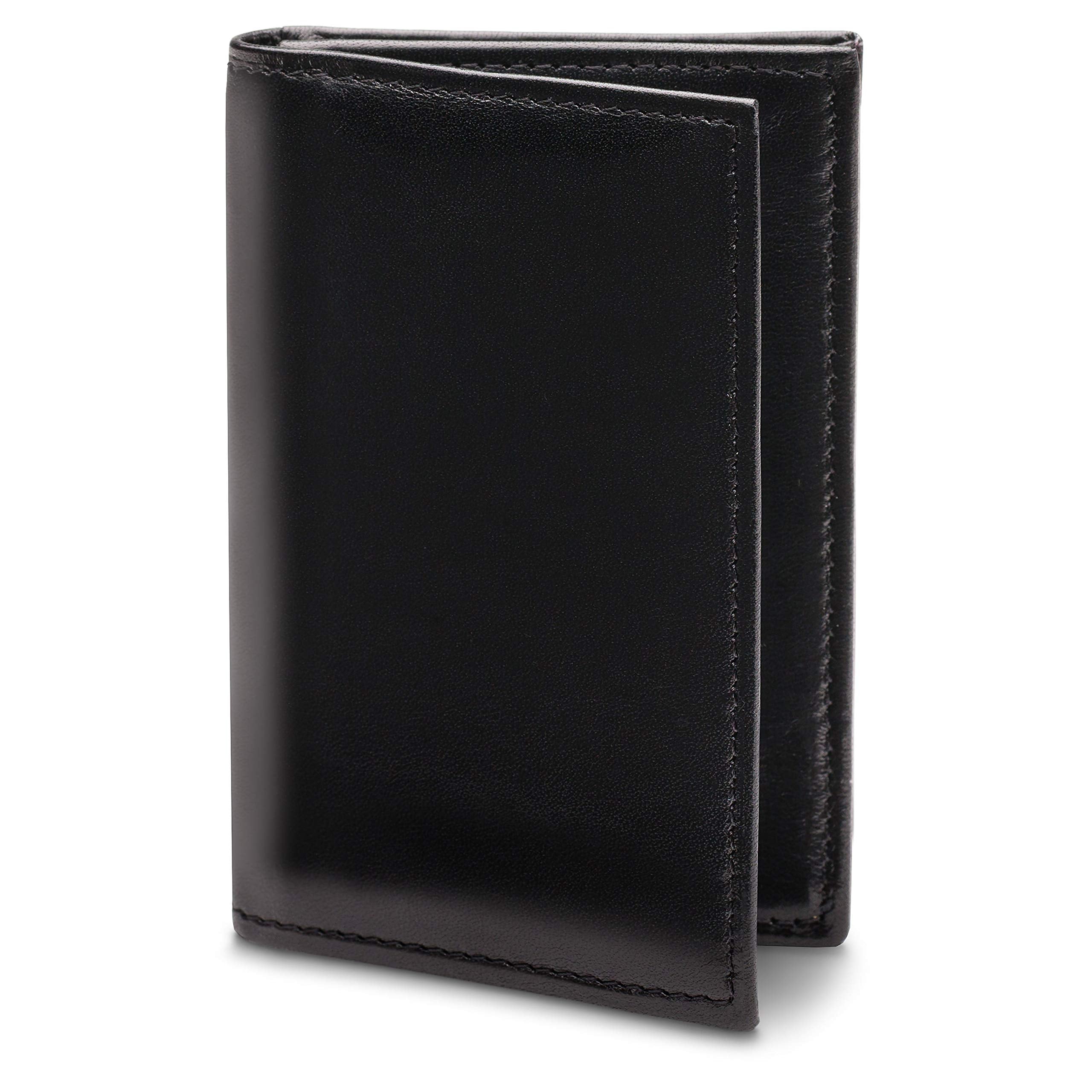 Originally intended as a card case, this popular piece is often used as a thin, small wallet. The left features 2 pockets (1 flat, 1 gusset-style) and an ID window. The gusset pocket can carry numerous business cards, credit cards, as well as some folded currency. Bosca Men's Full Gusset, 2 Pocket Card Case with I.D.