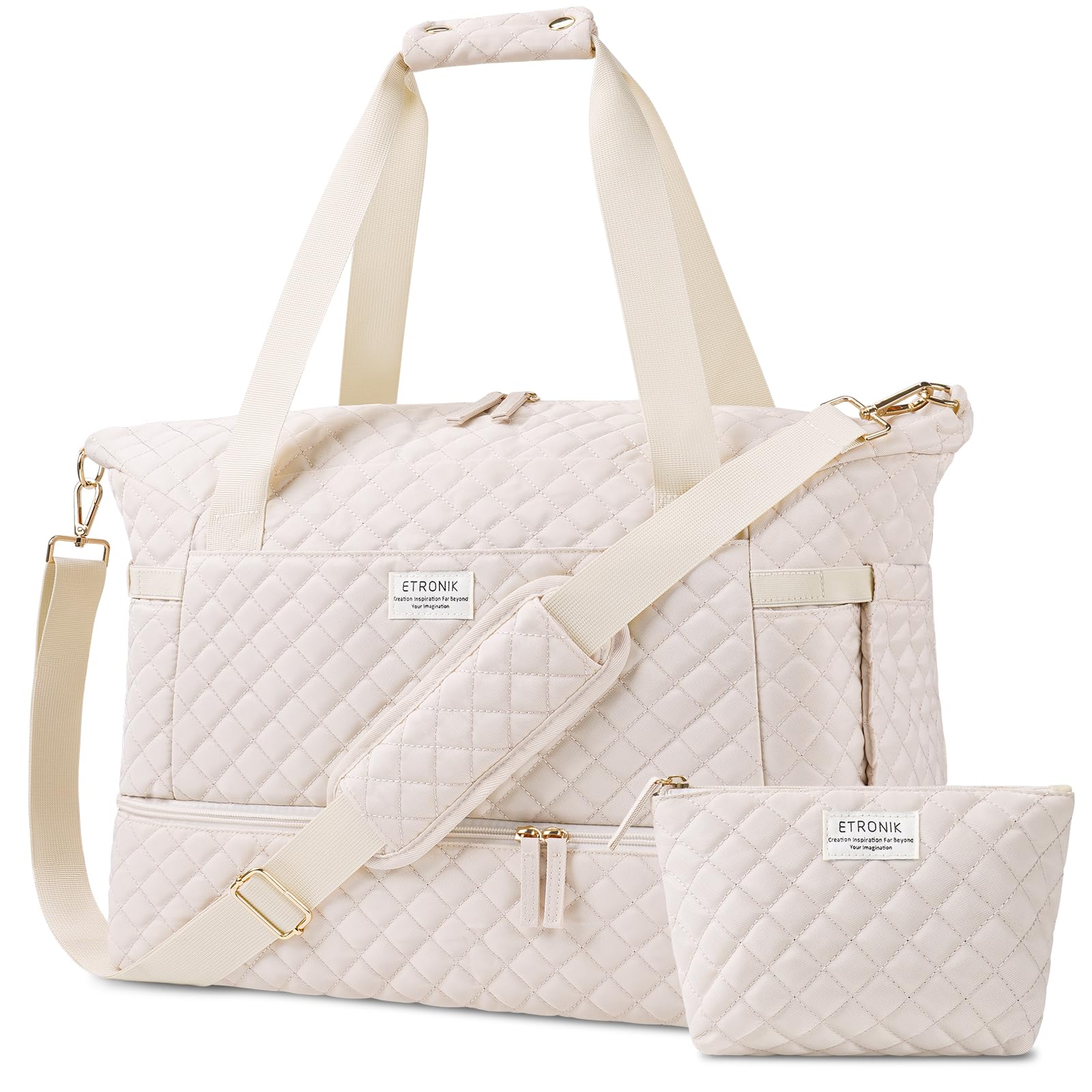 ETRONIK Travel Bag for Women, Gym Duffel Bag with Shoes Compartment, Weekender Overnight Bag with Wet Pocket for Women Travel Gym Daily Use (Beige) U1