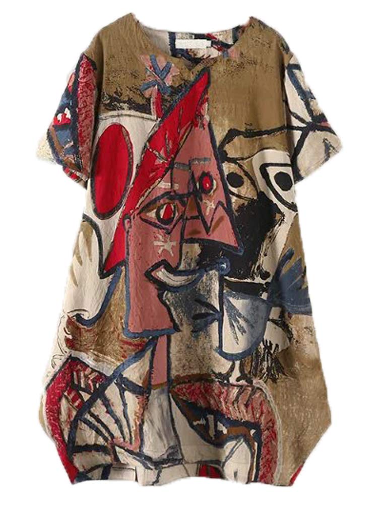 FTCayanz Women's Casual Midi Dresses Short Sleeve Loose Print T Shirt Dress with Pockets Brown XX-Large U1