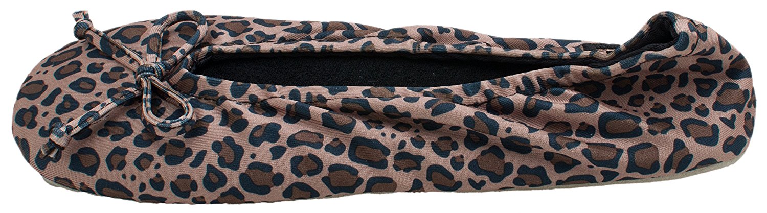 Isotoner Women's Classic Satin Ballerina Slipper Cheetah Medium U2