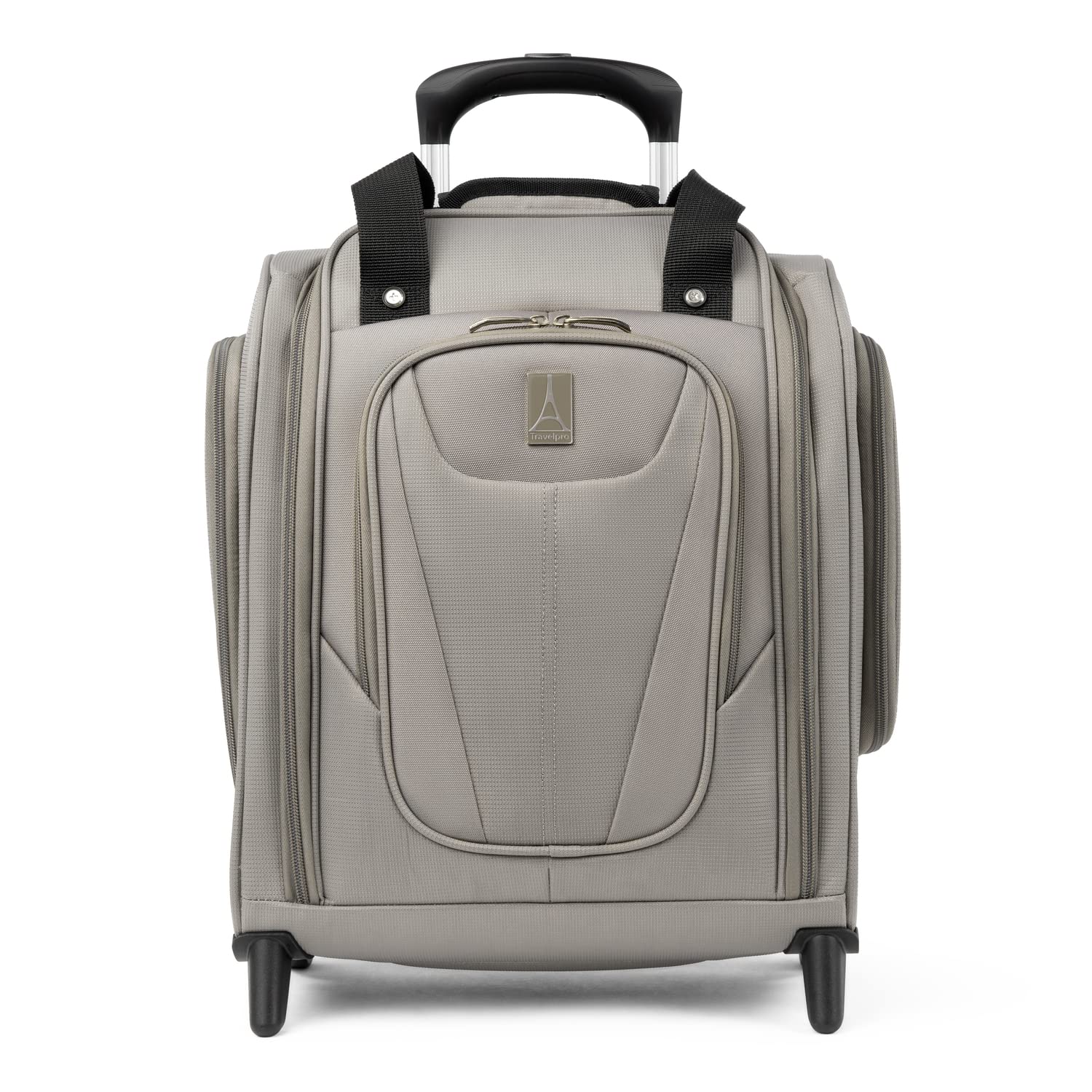 • Like traveling with a personal assistant, the Travelpro Rolling UnderSeat Carry-On is so organized, you don't have to be. Numerous, specially-designed pockets include a padded laptop or tablet sleeve, removable plastic compartment for cosmetics, office supplies or accessories, quick-access external pockets and a roomy interior with large zippered opening. Designed to fit under the seats of most major domestic airlines, this compact carry-on is your ideal onboard traveling companion, flying solo for a quick turnaround or playing back up to your other luggage. Lightweight, PowerScope Lite handle reduces wobble, inline skate wheels keep you rolling smoothly, and a rear stacking strap gives you the flexibility to stack this bag atop another rolling bag for hands-free travel.