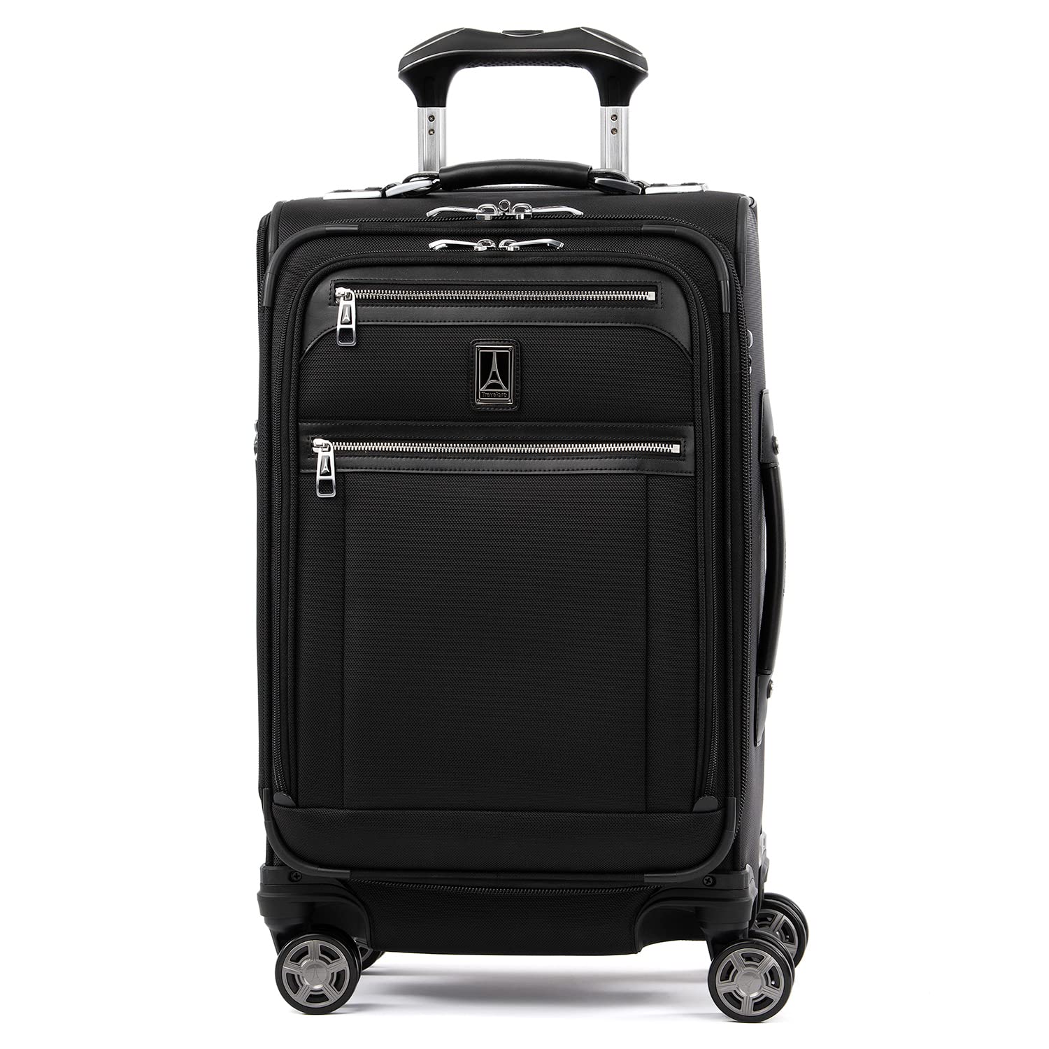 Maximize your carry-on with sophisticated style. The platinum elite 21” expandable carry-on spinner delivers big on form and function with a tip-resistant expansion that offers up to 2” more packing capacity, deluxe tie-down system, integrated accessory pockets and a removable quart-size wet pocket that is TSA compliant and perfect for toiletries. Plus, the drop-in, fold-out suiter is specifically designed to accommodate hanging clothes and prevent wrinkling. Built-in USB port lets you power up on the go, while a dedicated powerbank pocket for your back-up battery adheres to FAA regulations. Perfect for short to medium-length trips, this carry-on spinner is crafted in style with premium fabrics, genuine leather and chrome zippers. Top-of-the-line mobility Features include the precisionglide system with eight magnatrac, self-aligning, 360-degree spinner wheels guided by an adjustable PowerScope extension handle with patented Contour grip and rubberized touch points for comfortable, easy maneuvering wherever you go. Backed by our built for a lifetime limited worry free. Patented PowerScope airline-grade aluminum extension handle minimizes wobble and has four stops at 36”, 38”, 40” and 42 5” to accommodate users of different heights.